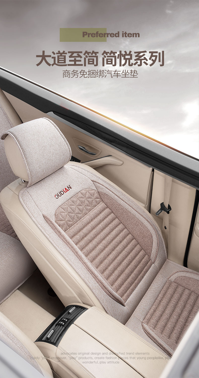 亚麻棉布汽车坐垫小蛮腰单片座椅垫子冬季车内半包围座垫四季通用