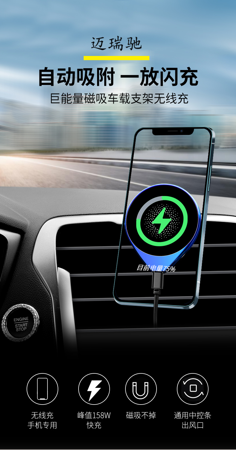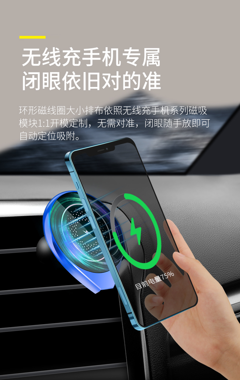 手机车载支架2021新款汽车无线充电器导航磁吸贴片出风口自动感应